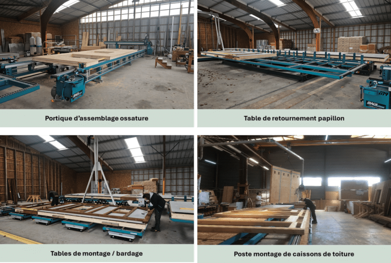 Cette infrastructure comprendra trois postes clés dédiés à la fabrication de murs à ossature bois et d’ombrières bois, permettant d’optimiser chaque étape du processus de production.